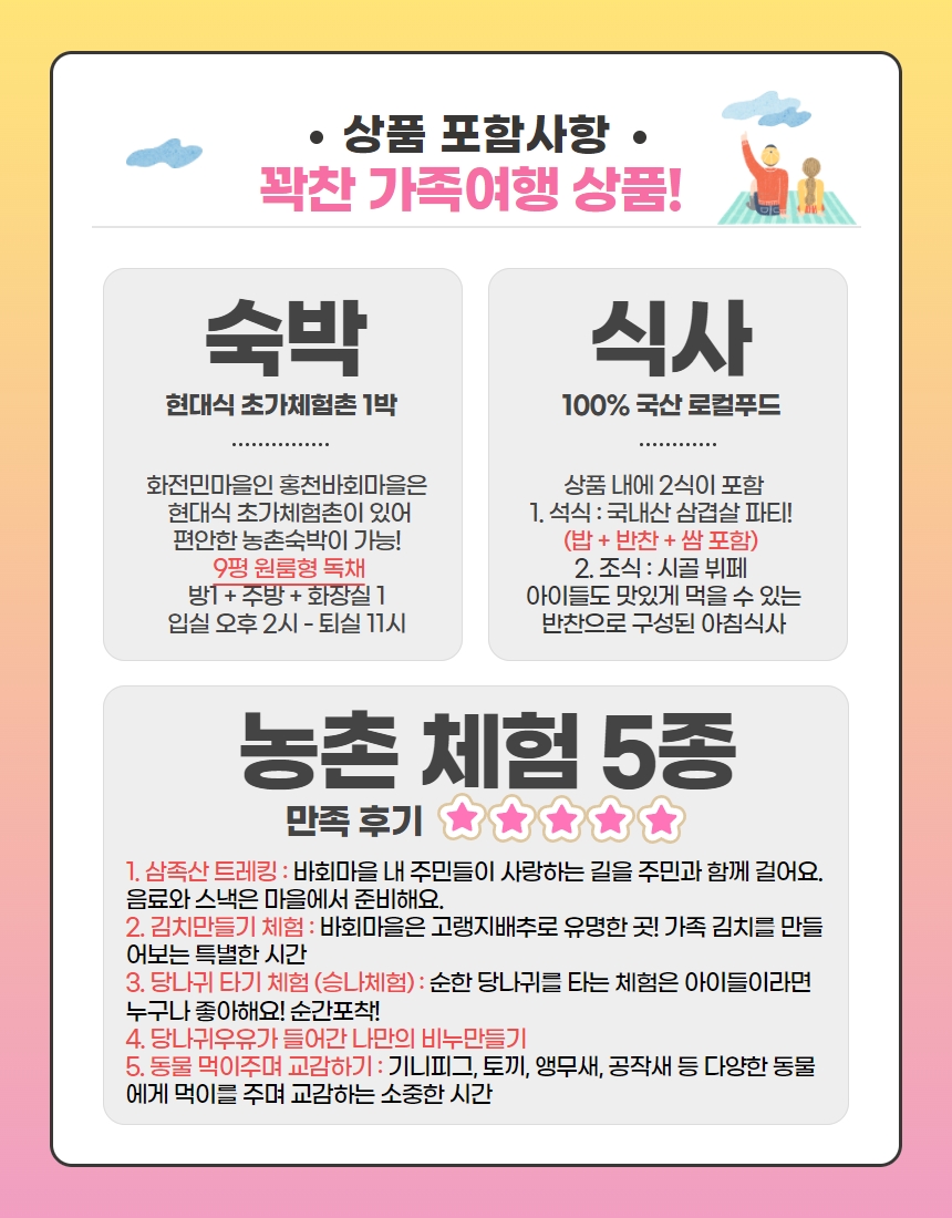홍천 아이랑 아빠랑 농촌체험여행 PKG 구성]