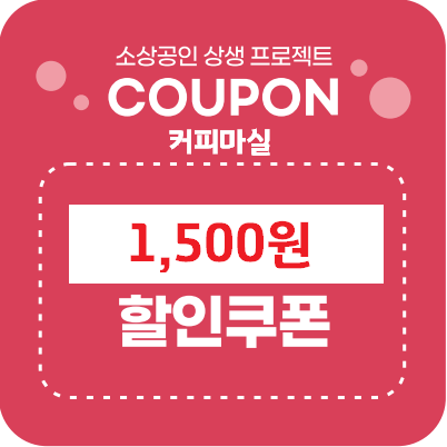인근 " 카페마실" 에서 음료 할인 쿠폰을 드립니다.