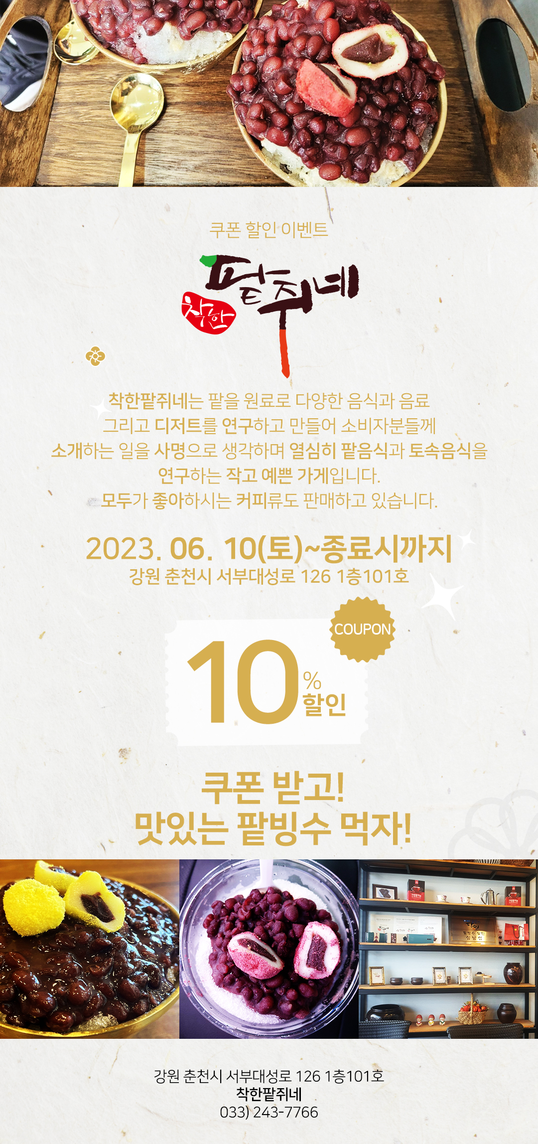 춘천 팥죽 생활의 달인 " 착한 팥쥐네" 에서 할인권을 드립니다