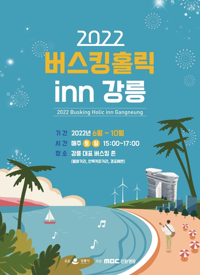 버스킹홀릭 inn 강릉은 예향의 도시 강릉에서 올해부터 시작하는 펼쳐지는 버스킹 축제로, 사전 선정된 전국의 버스커들이 월화거리, 경포해변, 안목해변 등 강릉의 아름다운 대표 관광지에서 오감만족 퍼포먼스를 펼치며 관객들에게 눈과 귀가 즐거운 공연을 선사한다.