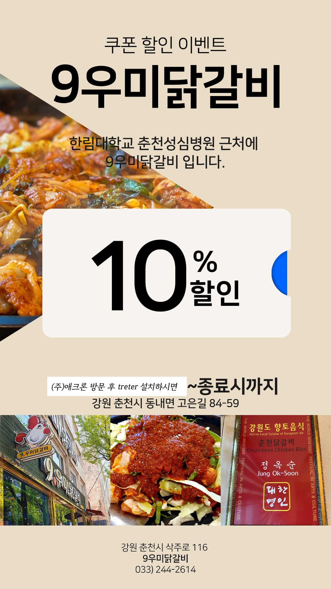 춘천 구)우미닭갈비에서 할인권을 드립니다
