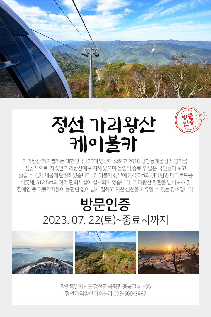 정선 가리왕산 케이블카 방문인증