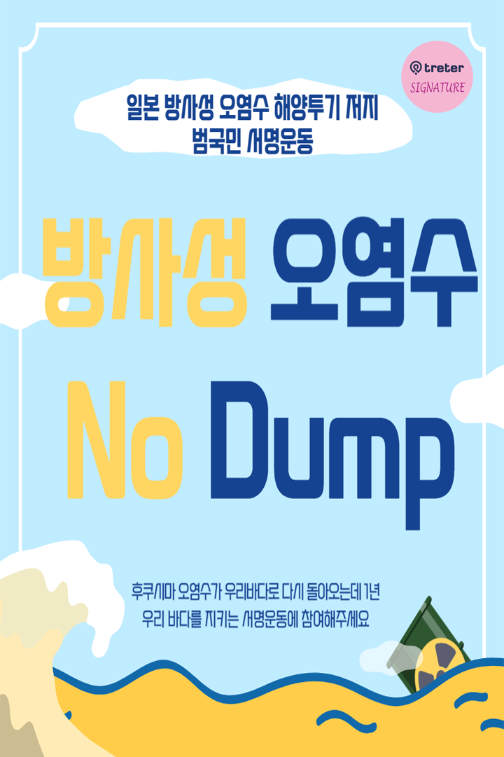 정부가 후쿠시마 방사성 오염수 투기를 저지하기 위한 구체적이고 종합적인 대책을 마련할 수 있도록, 오염수에 대한 정보를 투명하게 공개하고 국민과의 소통 방안을 마련할 수 있도록 아래 링크를 눌러 서명에 동참해 주세요.