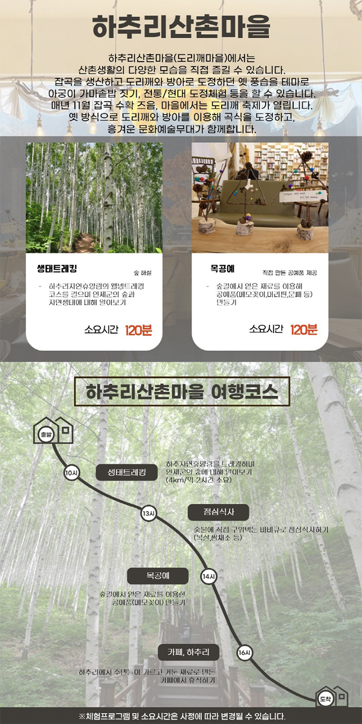 하추리산촌마을(도리깨마을)에서는 산촌생활의 다양한 모습을 직접 즐길 수 있습니다.