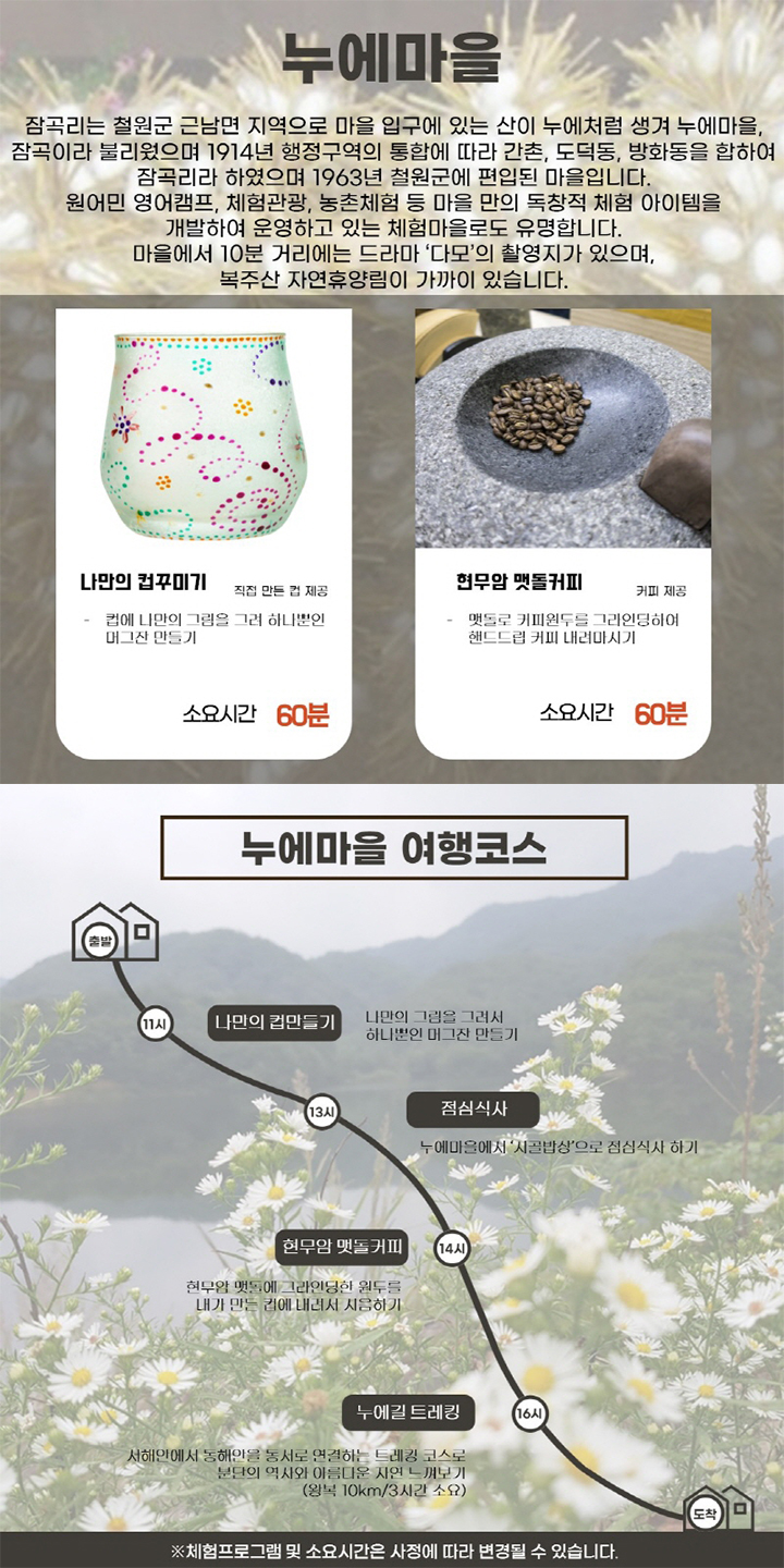 원어민 영어캠프, 체험관광, 농촌체험 등 마을 만의 독창적 체험 아이템을 개발하여 운영하고 있는 체험마을로도 유명합니다.