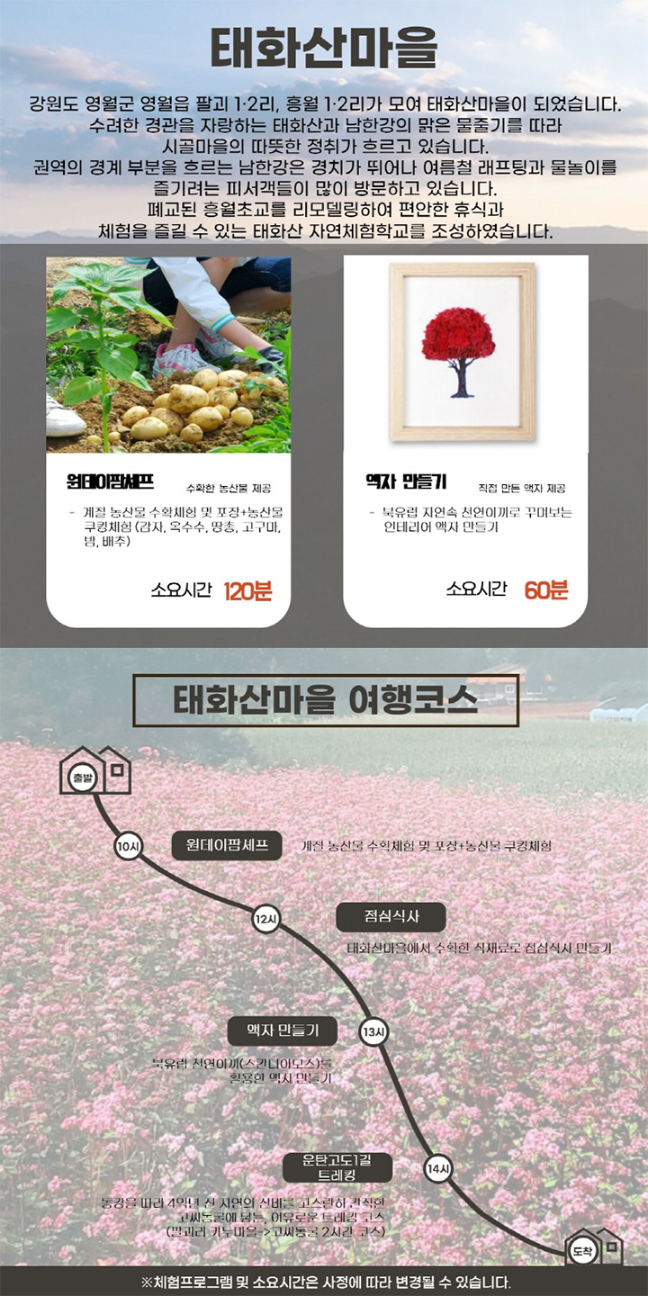 수려한 경관을 자랑하는 태화산과 남한강의 맑은 물줄기를 따라 시골마을의 따뜻한 정취가 흐르고 잇습니다.