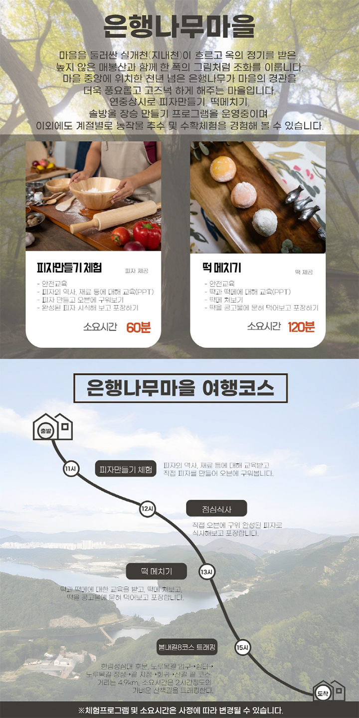 연중상시로 피자만들기 떡매치기 솔방울 장승 만들기 프로그램을 운영중이며 이외에도 계절별로 농작물 추수 및 수확체험을 경험해 볼 수 있습니다.