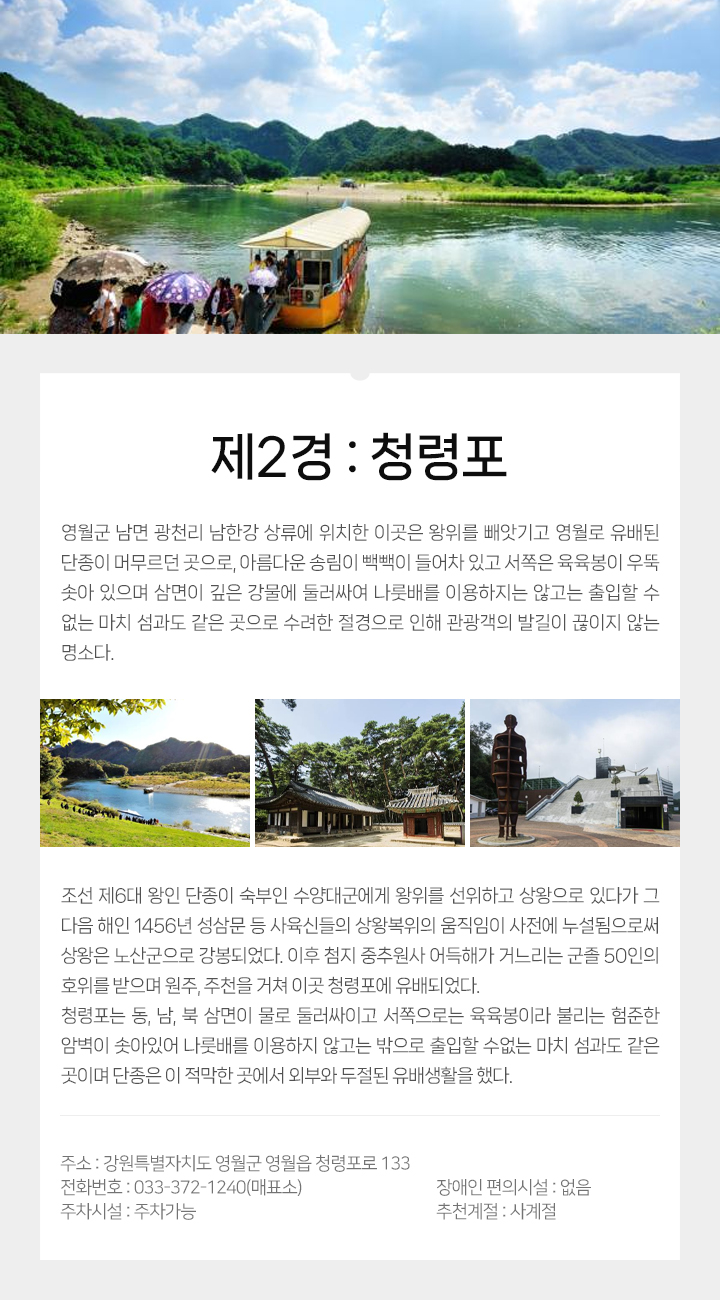 주소 : 강원특별자치도 영월군 영월읍 청령포로 133