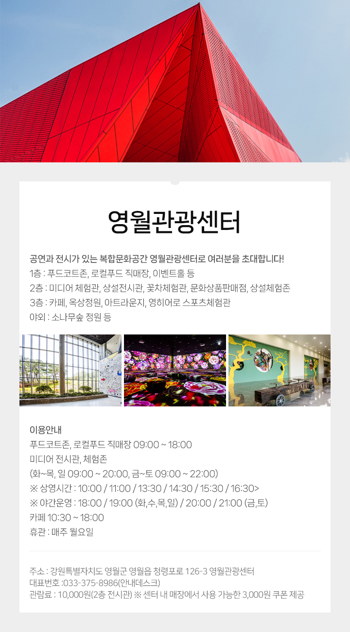 공연과 전시가 있는 복합문화공간 영월관광센터로 여러분을 초대합니다!