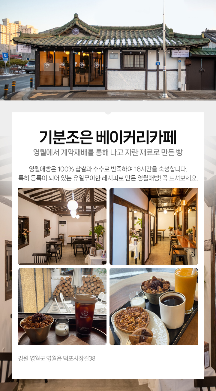 '기분조은'은 영월에서 계약재배를 통해 나고 자란 재료로 만든 빵을 판매하는 베이커리 카페입니다.