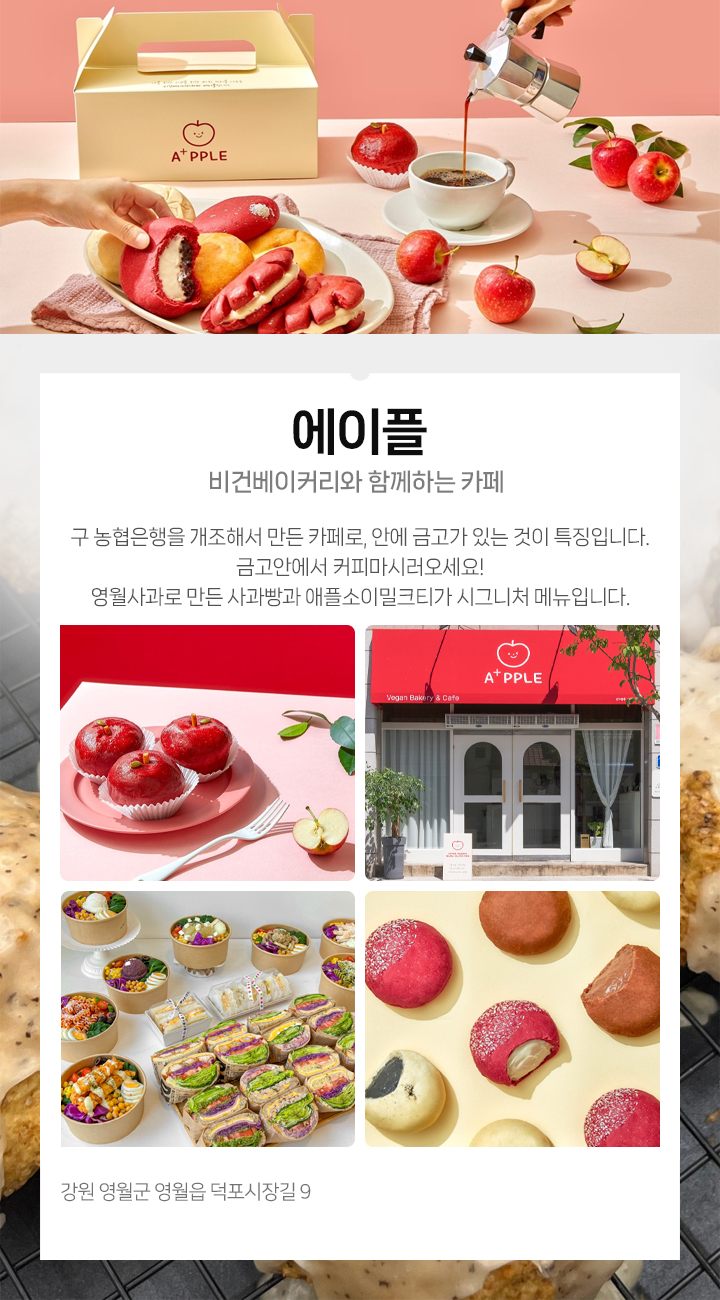 영월사과로 만든 사과빵과 애플소이밀크티가 시그니처 메뉴입니다.