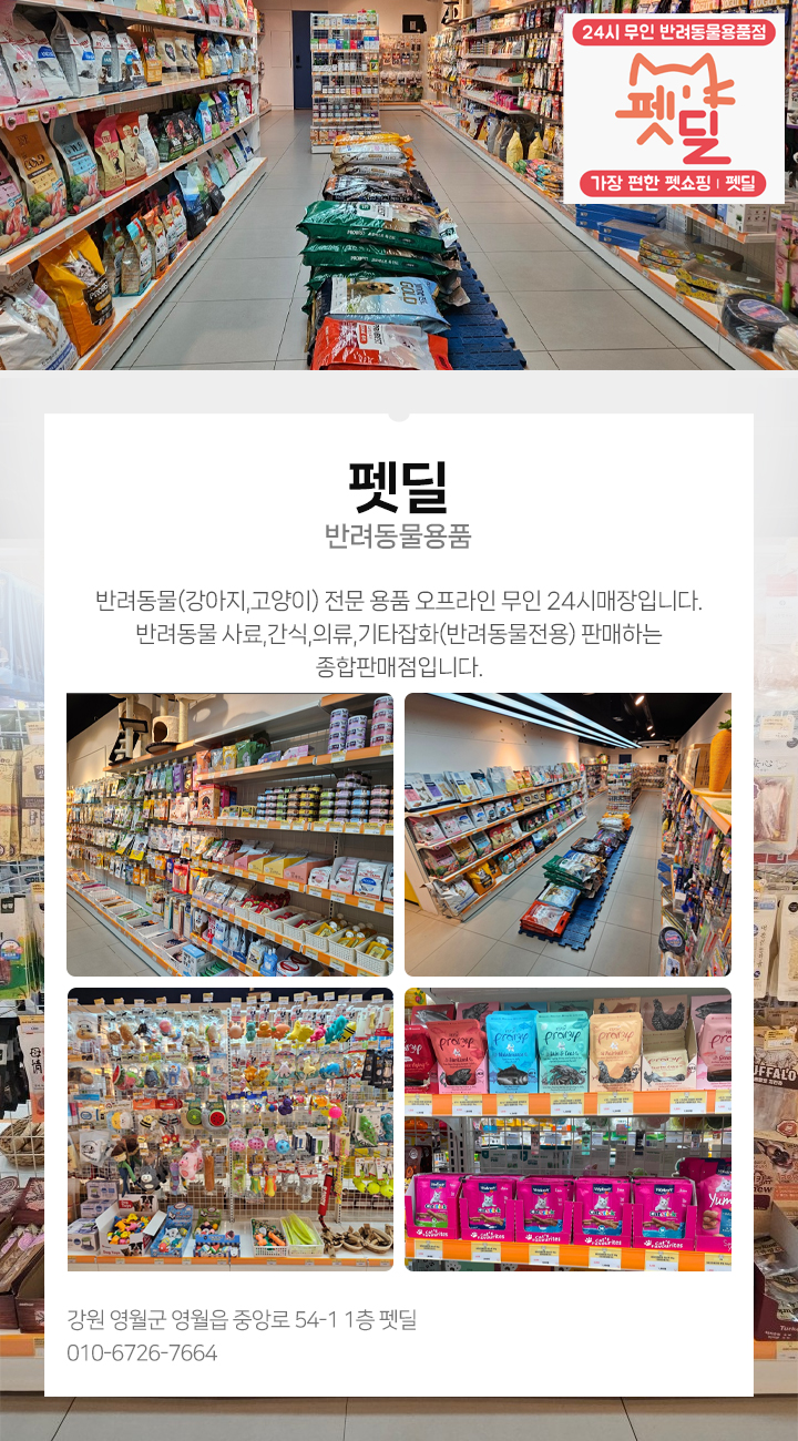 반려동물(강아지,고양이) 전문 용품 오프라인 무인 24시매장입니다.