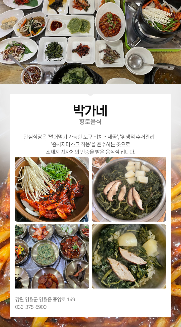 안심식당은 '덜어먹기 가능한 도구 비치・제공', '위생적 수저관리' , '종사자마스크 착용'을 준수하는 곳으로 소재지 지자체의 인증을 받은 음식점 입니다.