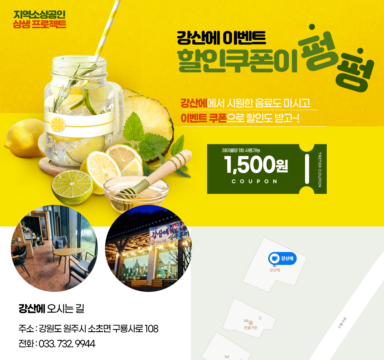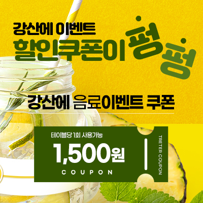 인근 차,음료 전문점 "강산에" 에서 음료 쿠폰을 드립니다.