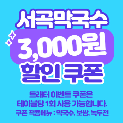 막국수 전문점 " 서곡막국수"" 에서 할인 쿠폰을 드립니다.