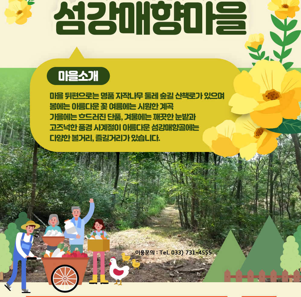 아름다운 자연환경과 어울리는 인정 많은 사람들과 따스한 고향의 정취를 간직한 풍요로운 농촌마을에서