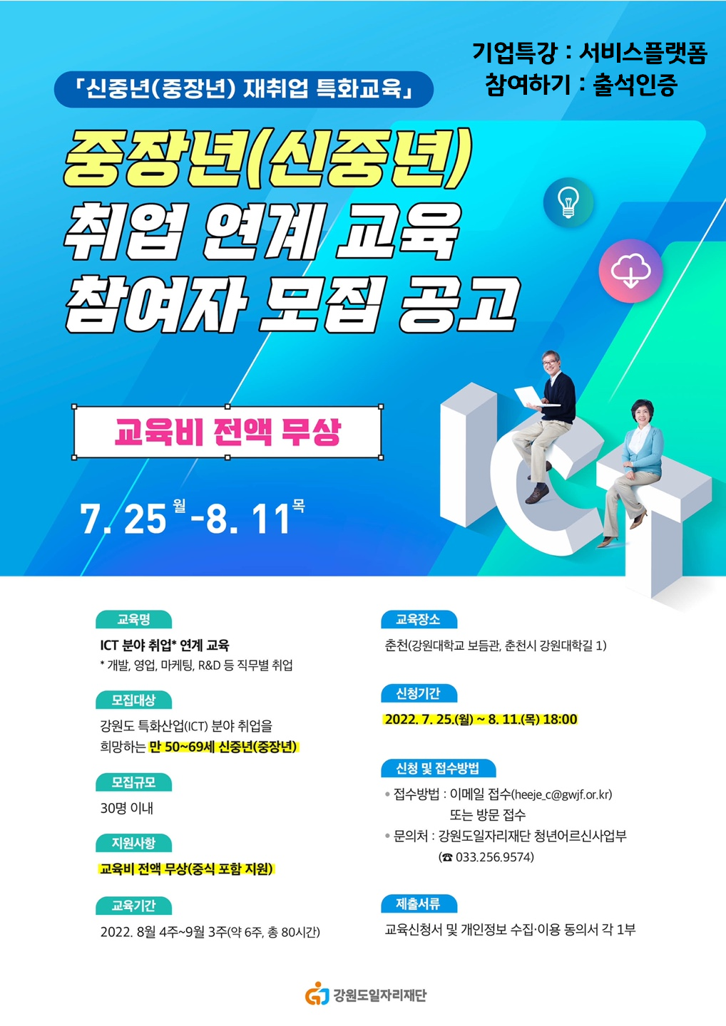 모집대상 : 강원도 특화산업(ICT) 분야 취업을 희망하는