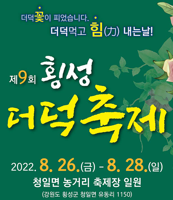 향이 강하고 아삭아삭한 최상의 건강식품 횡성더덕은 산더덕과 똑같은 더덕을 생산한다는 집념으로 재배에 성공한 전국 최고 품질의 더덕으로 사포닌과 인우린 등의 성분이 위장은 물론 폐와 신장에도 좋다는 것이 과학적으로 증명되었습니다. 우리군 대표 농·특산물인 "횡성더덕"의 우수성을 널리 홍보하고 청일의 청정이미지를 알리기 위해 지난 2012년 제1회를 시작으로 횡성의 주요 축제로 자리매김 하였습니다.