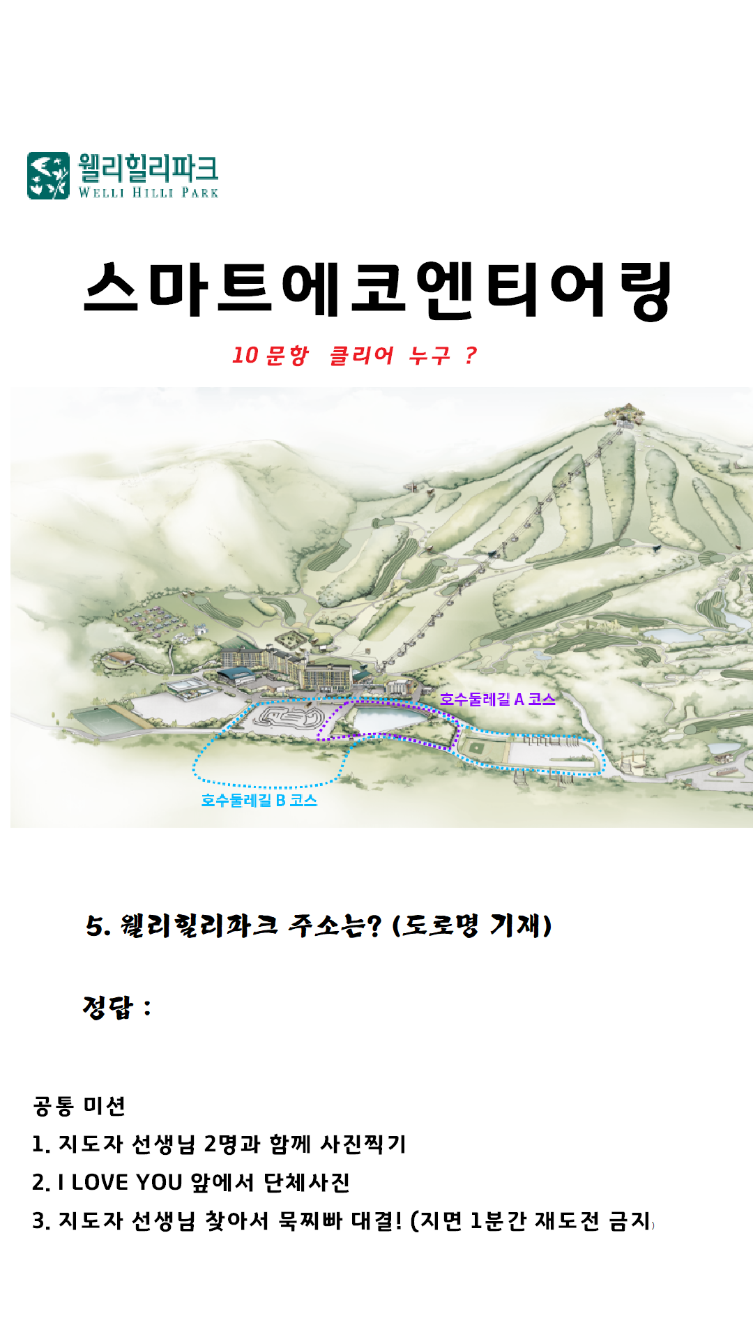 5. 웰리힐리파크 주소는 ? (도로명 기재)